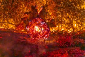 An oak tree burning inside out